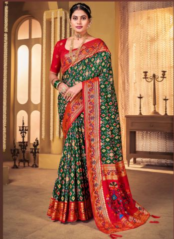 classic green woven patola soft silk saree premium look